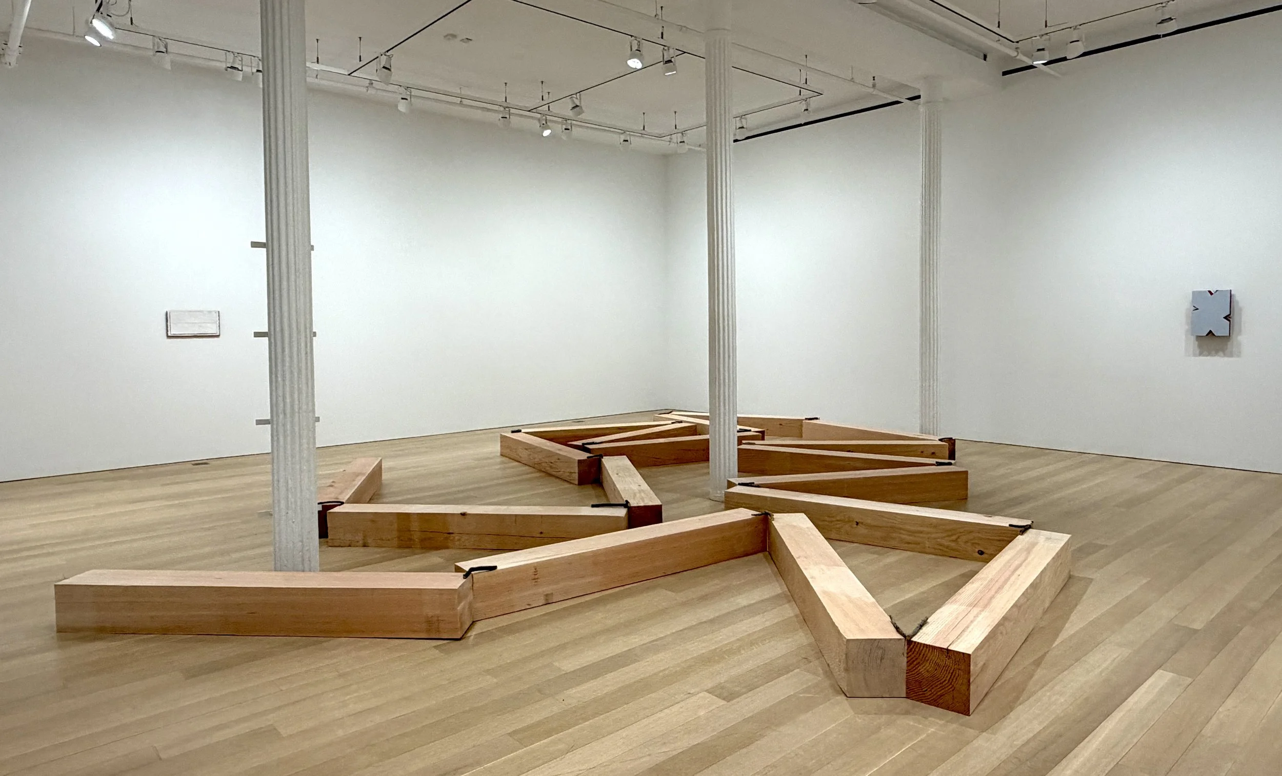 In both his two-dimensional works and his three-dimensional situations, Suga’s use of geometry, together with the irregular presence of branches and other organic elements, serves to keep the expression of his own interiority at a distance – an essential principle shared by all artists associated with Mono-ha. By diminishing what has defined the identity of the artist in Western modernity since the Renaissance, Suga opens the possibility for another form of interiority to emerge: that of the mono (the thing) itself, or of space. Rejecting the term “composition” in favor of “action,” Suga seeks to produce a jōkyō (situation): a space in which things appear in their essential condition, beyond both conceptualization and human perception. His installations, always adapted to the sites in which they unfold, highlight the immanent characteristics of space and point to the very place in which the viewer stands. Contorted Positioning (1982/2026), presented in New York, andBoundary of Marginal Scenery (1994/2026), installed in Paris, do not replicate their original configurations but instead respond to the specific conditions of the exhibition space. In Suga’s practice, the work is never confined to a fixed project; it is conceived as a situation informed by a particular space-time with which the artist actively engages. In seeking to free art from all forms of human fiction, Suga lays the groundwork for an aesthetic that moves beyond the human. Rather than expressing the turmoil of the artist’s interior life, his work restores to the things that surround us the full force of their fundamental otherness. By revealing the subjecthood of things-in-themselves and allowing their “intentionality” to emerge, Suga lets them exist as agents – as our equivalents. Initiated in 1968 and pursued without interruption ever since, Kishio Suga’s practice stands as one of the most radical transformations of our relationship to matter in recent art history.
